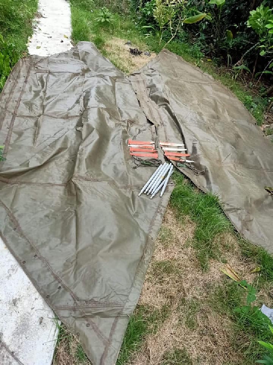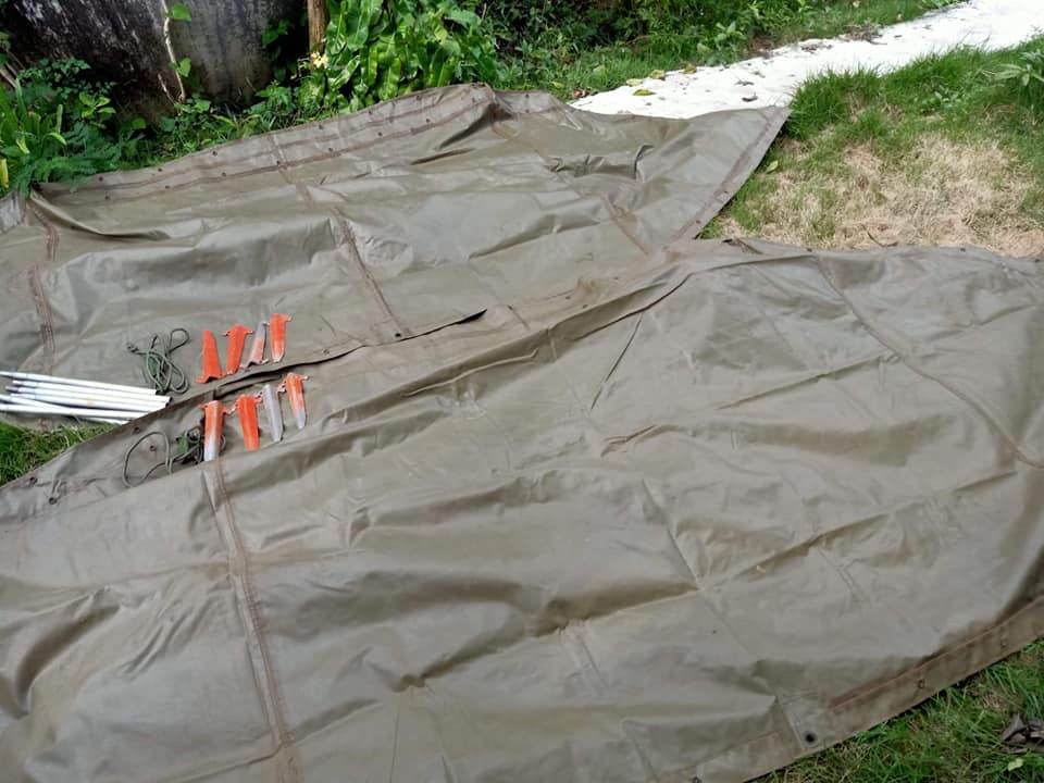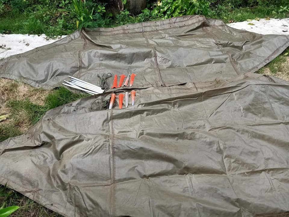 เต็นท์กระโจมยุคเวียดนาม พร้อมอุปกรณ์ครบชุด มือสองสภาพดีผ้าใบกันน้ำ รอยตะเข็บสีดำตรงตะเข็บเป็นกาวกันน